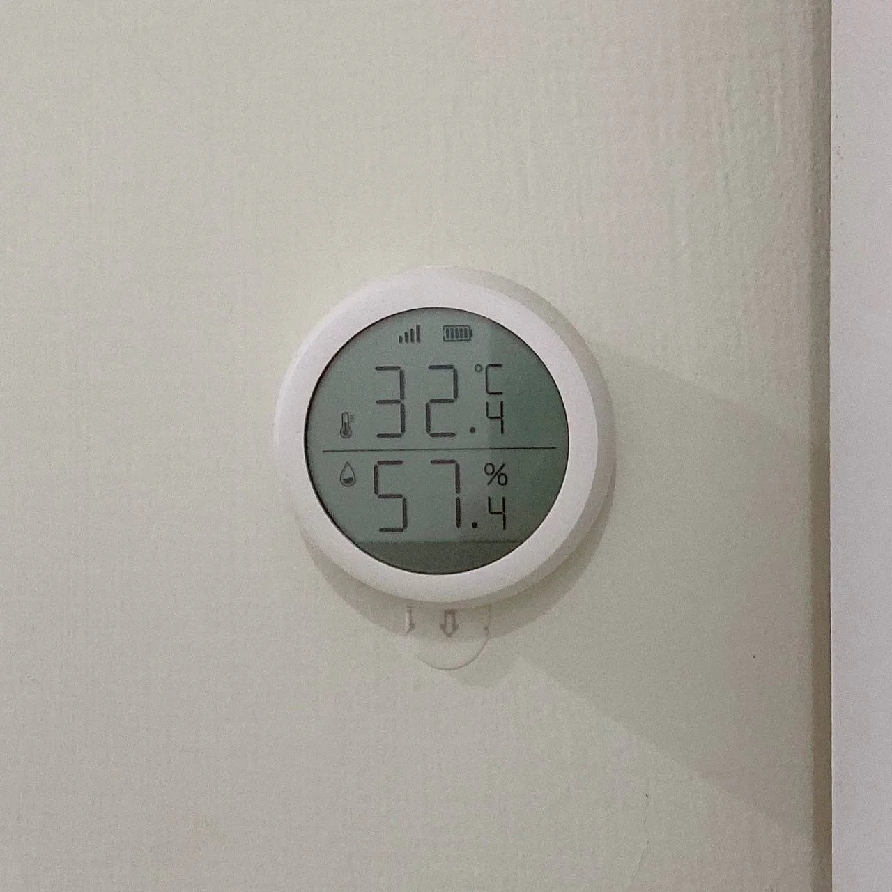 Tuya 溫濕度,這個會顯示溫度數字,黏在牆壁上可即時知道現在溫濕度。