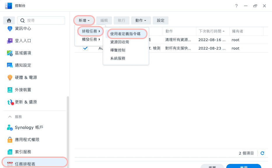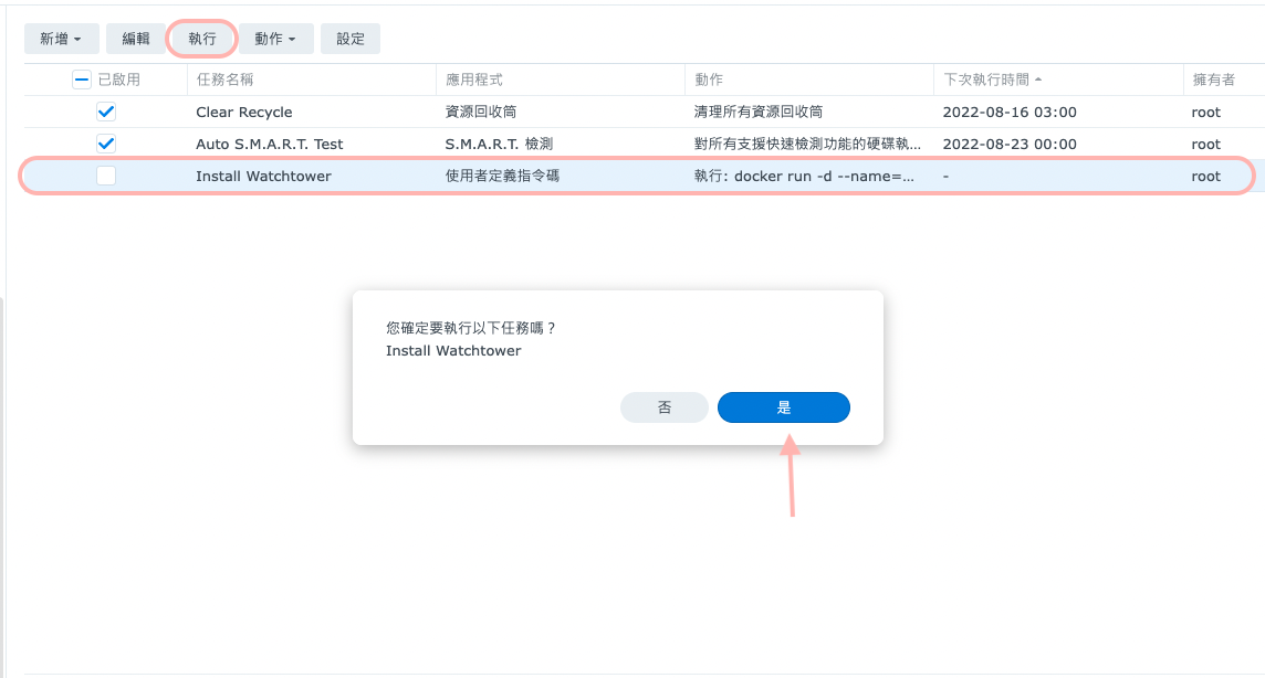 在 Synology DSM 上透過任務排程表安裝 Watchtower,實現 Docker Image 自動更新。